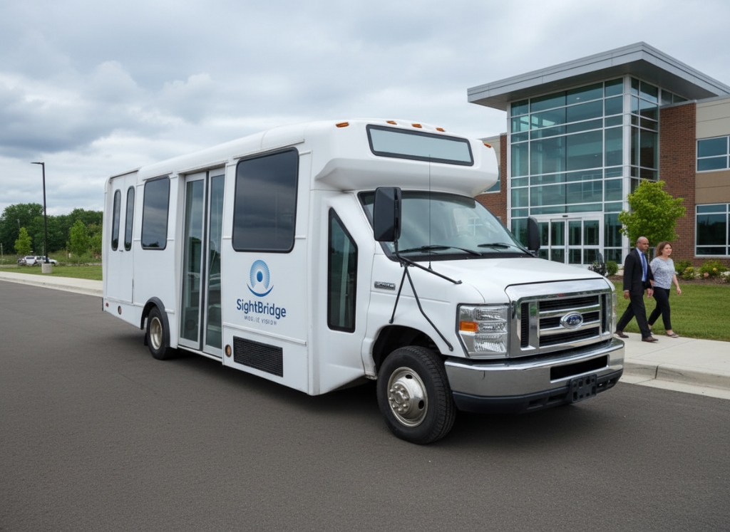 Our E-450 Mobile Unit is a fully self-contained eye care clinic on wheels — no referral needed, no waiting weeks for an appointment.